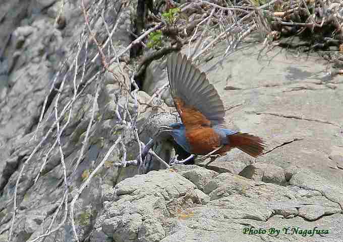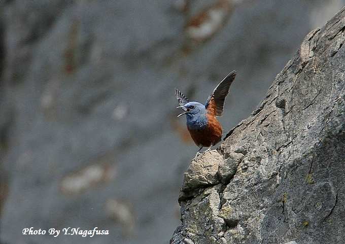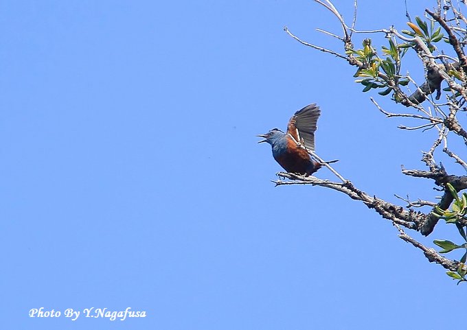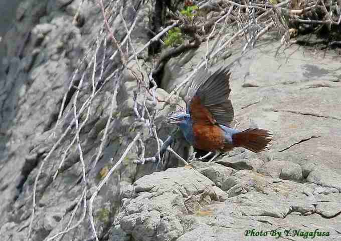 2014年4月3日 イソヒヨドリ♂ 求愛ポーズ