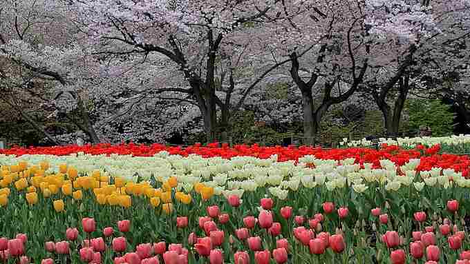 カワセミのいる公園の花畑はチューリップが満開でした。ソメイヨシノも満開です。