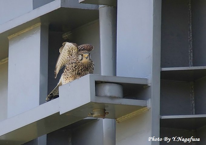 この日は風が強すぎでチョウゲンボウは風陰にしばらく留まっていました。