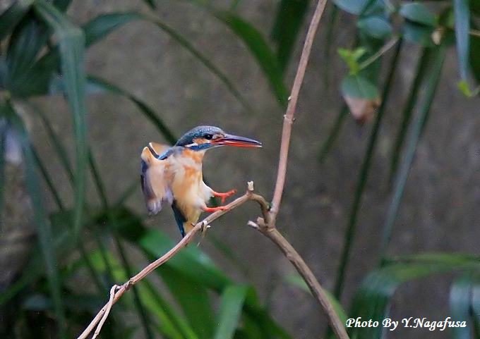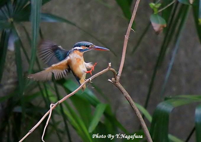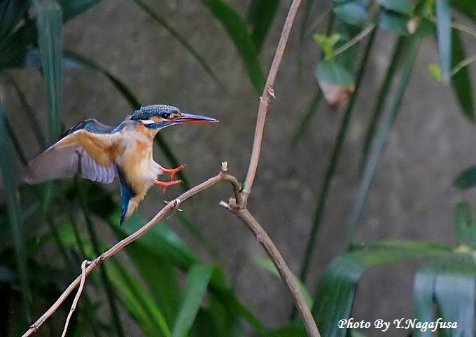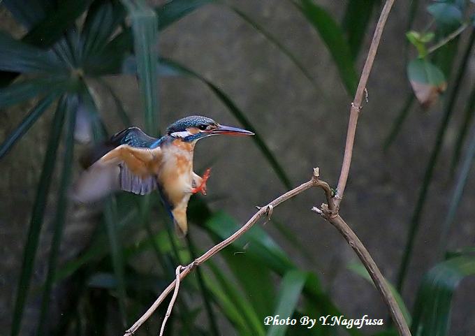 2014年4月9日 カワセミ ♀飛び付 本日はムクドリの巣穴を見つけました。 4月5日撮影のカワセミです。 この日の♀は何回も同じ場所から飛び出しては元の位置に戻ります。 同じような飛び付場面のみ集めてみました。 カワセミ♀が飛び付きます。