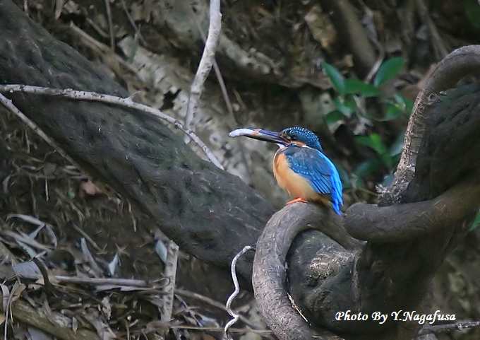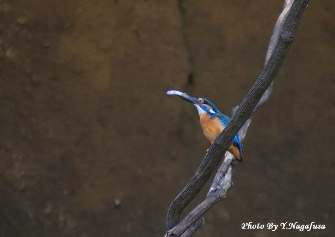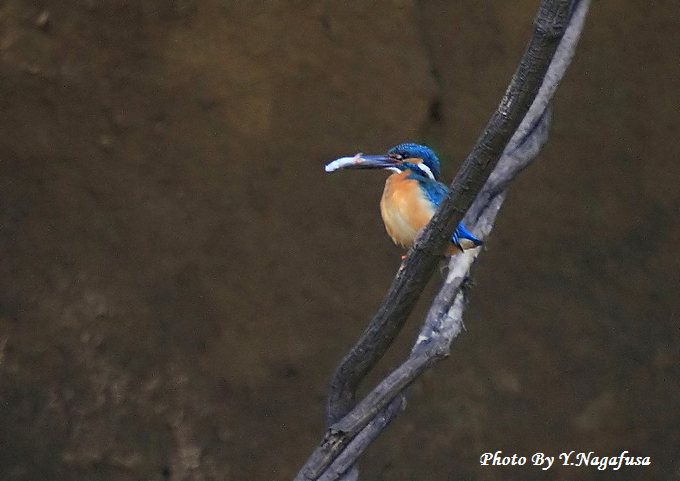 カワセミ♂が魚を捕って来ました。