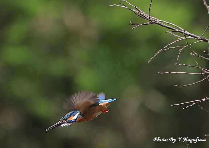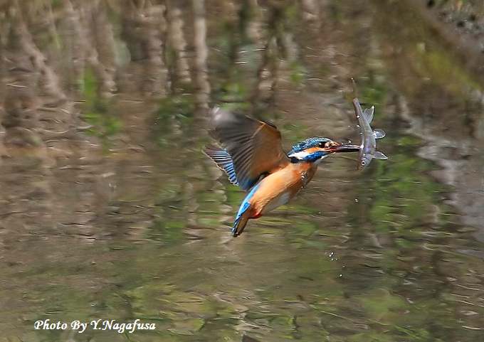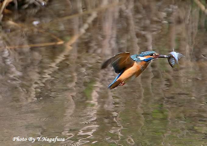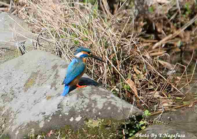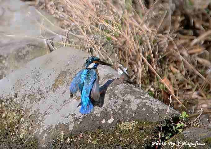 この場所のカワセミは数回飛びこんで獲物を捕っていましたが、