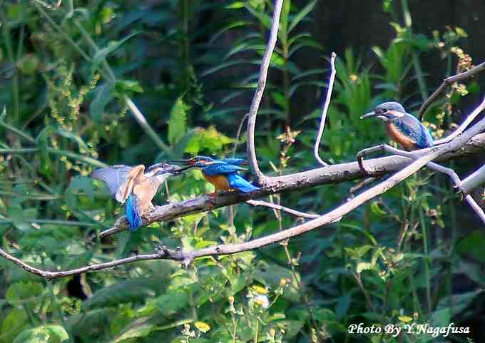 この日カワセミ雛に給餌する場面を撮る事が出来ました。