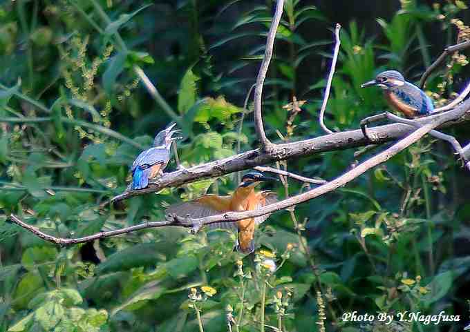 2014年5月28日 カワセミ雛1 留まり物、給餌