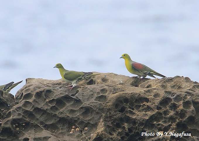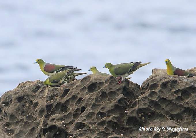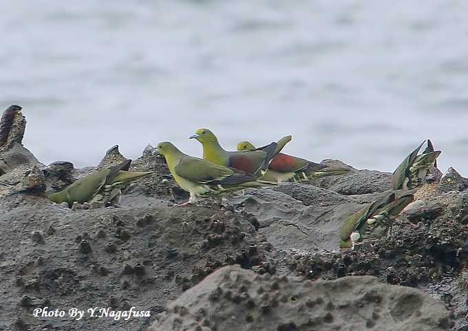 この日は海もおだやかで波に飲まれるアオバトはいませんでした。