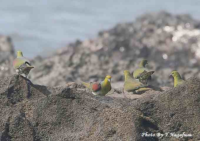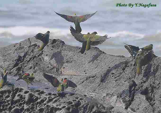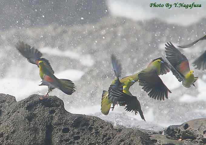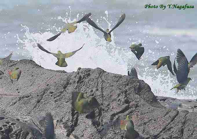 2014年7月12日 アオバト 波被り 本日はサンコウチョウの雛を見て来た。 7月8日撮影のアオバトです。 一昨日掲載のアオバトの続きで海水を飲みにくる場面です。 アオバトが岩の窪みにある海水を飲みに来ました。 波の来ないうちに急いで飲みます。 アオバト♂ 波が来ました。慌てて飛び上がります。