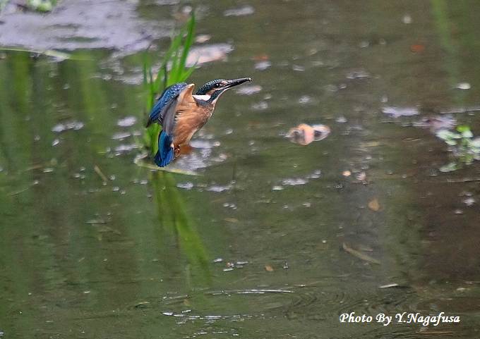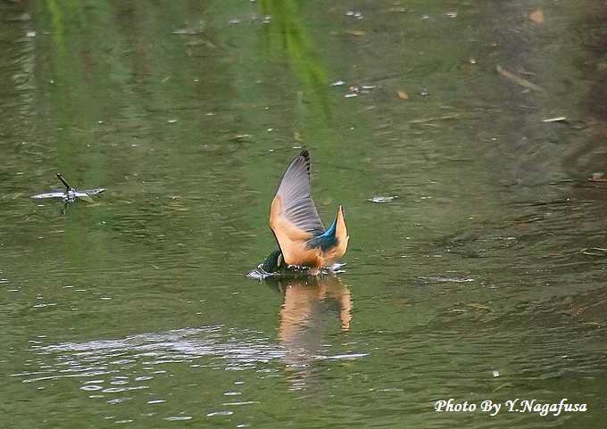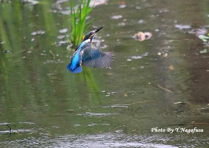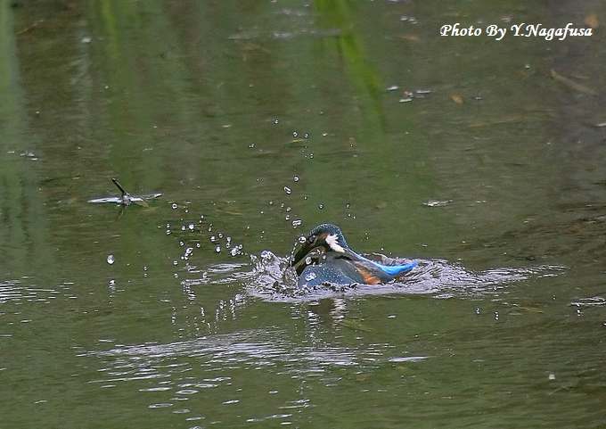 2014年7月23日 カワセミ 雛、水絡み 本日はオナガの水浴びを見て来ました。 先月撮影のカワセミ雛です。 この日カワセミ雛が獲物を捕る練習をしていました。 数回飛びこんだが木の葉しか捕れませんでした。 カワセミ雛が飛び込みます。 飛びこみました。 獲物が捕れません。