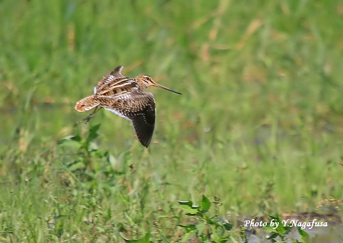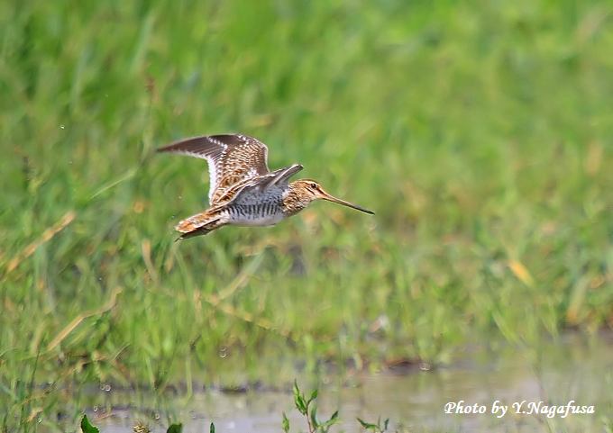 2014年9月10日 タシギ 飛翔 本日は曇りで散歩のみ。 昨日撮影のタシギです。 久しぶりに休耕田に行って来ました。 コサギが多い中にタシギを見つけました。 タシギが草の中から出てきました。 コサギに脅されてタシギが飛び上がりました。 休耕田の端に降りました。