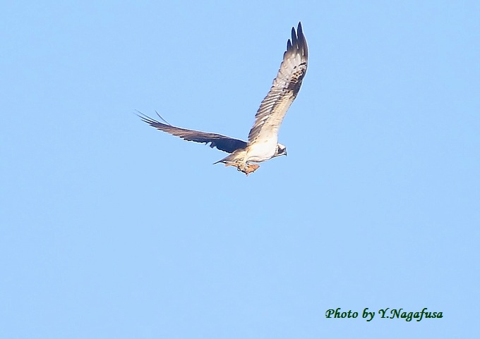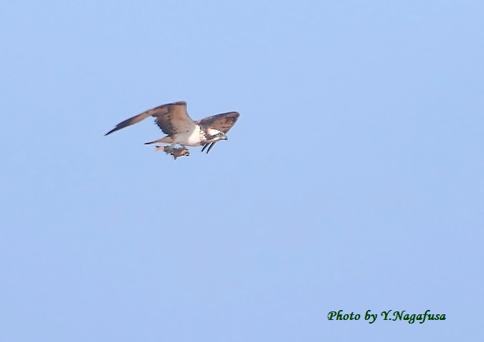 この日ハイイロチュウヒを待っているとミサゴが遠くで獲物を捕って来ました。