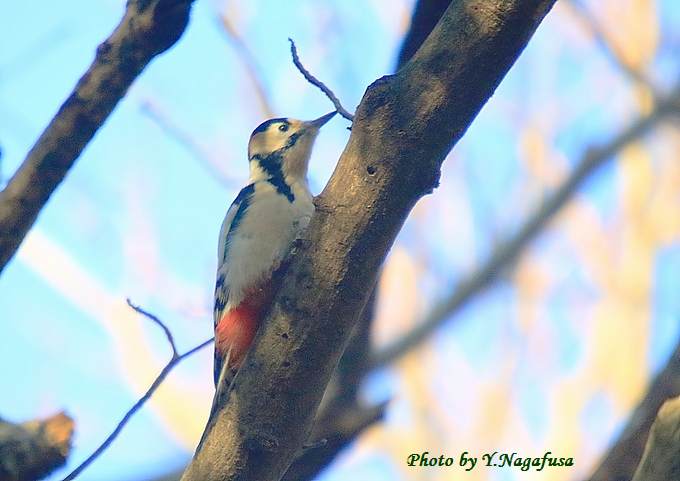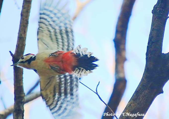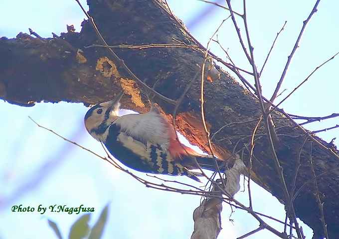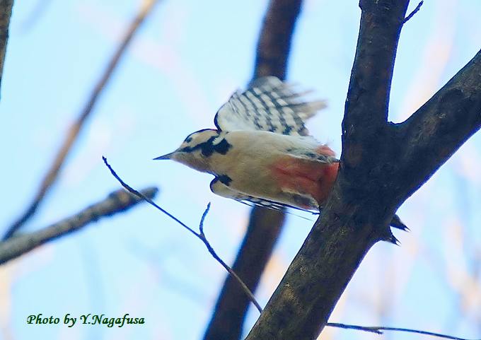 2015年1月19日 アカゲラ 留まり物、飛び出し 本日は久しぶりにアリスイに会って来ました。。 1月16日撮影のアカゲラです。 この日は、もういないと思っていたアカゲラにまた会えました。 空抜けで撮影条件は最悪でした。 アカゲラが穴を掘っていました。 飛び出す構えです。 飛び出しました。 お腹の赤が目立ちます。