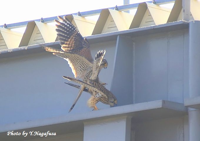 2015年3月14日 チョウゲンボウ ペアリング 本日は散歩のみ。 一昨日撮影のチョウゲンボウです。 春が来ました。 今年は何羽の雛が孵るか楽しみです。 ♀のところに♂が来ました。 ♂が♀の上に乗ります。