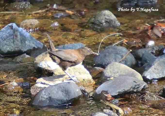2015年4月1日 カワガラス2 留まり物、飛翔 本日は雨時々曇り。桜が満開です。 3月23日撮影のカワガラスです。 この日、カワガラスの両親は頻繁に餌を運んでいました。 カワガラスが獲物を咥えています。 こちらも獲物を咥えています。 獲物を咥えて巣に行きます。 2羽が並びました。