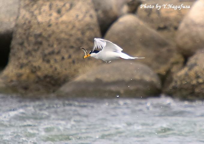 2015年6月2日 コアジサシ5 漁 本日も休養日。 5月22日撮影のコアジサシです。 この日、近くで何回も飛び込んで魚を捕っていました。 いっぱい撮ったので似たものですが掲載します。 このシリーズ今回で最後です。 コアジサシが魚を捕っています。