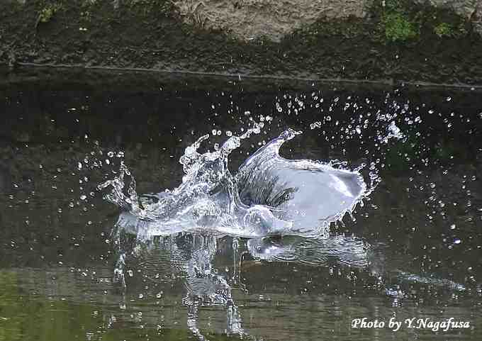飛び込んだので魚を咥えてくるかと思ったら水浴びでした。