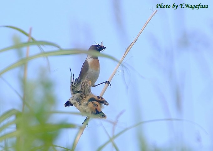 この日、ノビタキの給餌場面がありました。