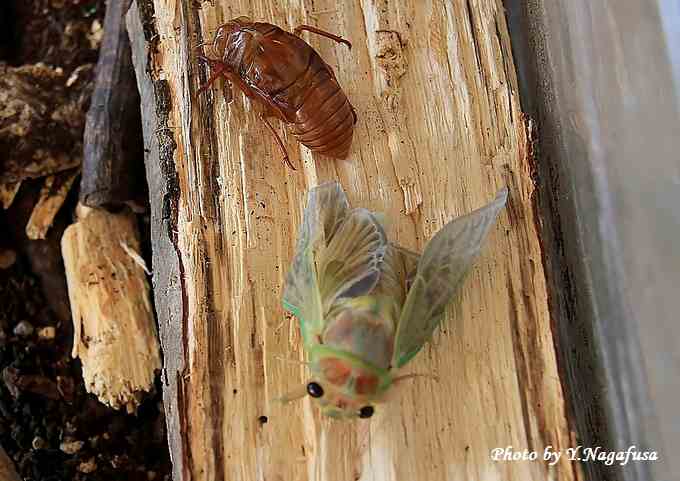 7月21日掲載のアブラゼミ羽化の前後です。