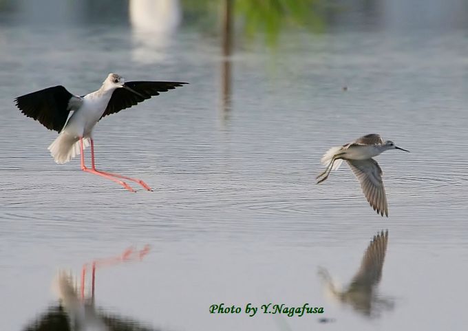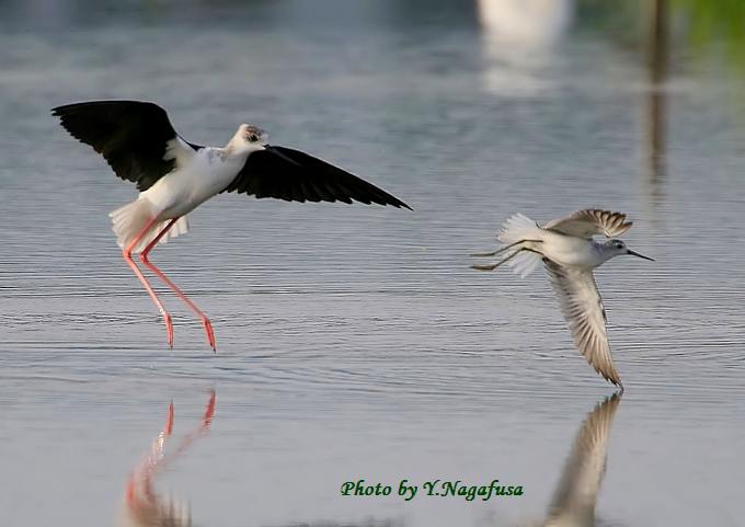 2015年9月19日 セイタカシギ コアオアシシギ追いかけ 本日はケリに出会えました。 9月12日撮影のセイタカシギです。 この日、セイタカシギがコアオアシシギを追いかけました。 採餌場所が近づくと時々バトルが起こります。 コアオアシシギをセイタカシギが追いかけます。