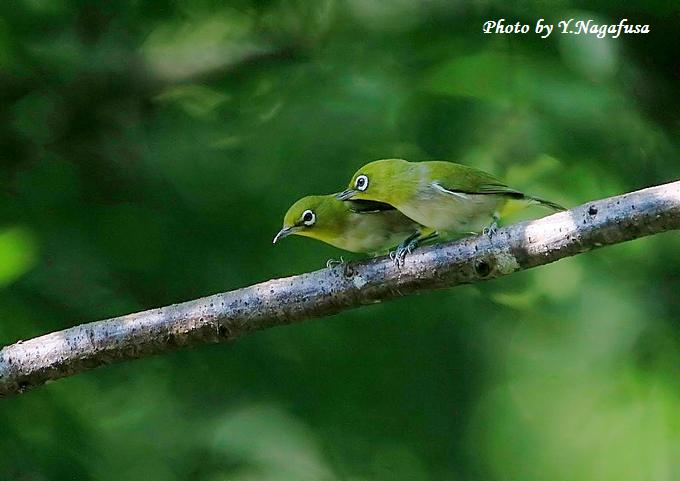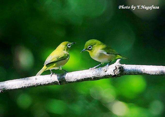 2015年9月20日 メジロ 枝留まり 本日はエゾビタキに遊んでいただきました。 9月14日撮影のメジロです。 この日、メジロのほほえましい場面が撮れました。 メジロが並びました。 日向と日陰で色が変わります。