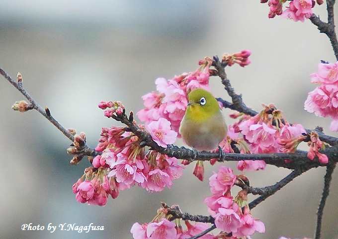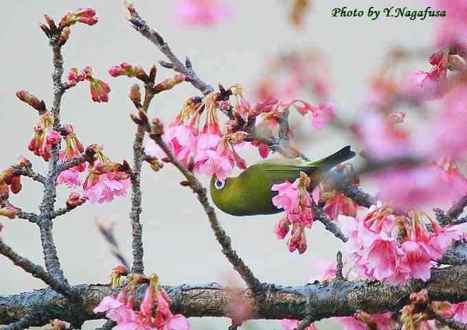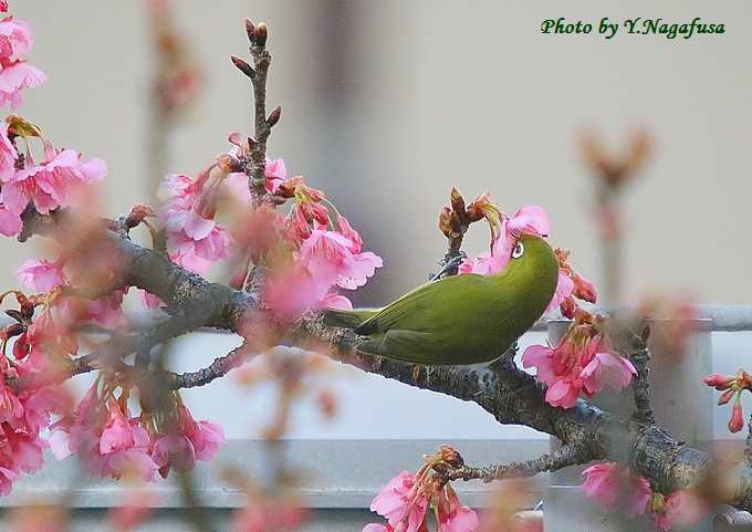 2016年1月16日 メジロ 河津桜 蜜吸い 本日は変わり映えしない鳥ばかりでした。 1月9日撮影のメジロです。 この日、いつもより早く咲いた河津桜にメジロが来ていました。 メジロが花の蜜を吸っています。