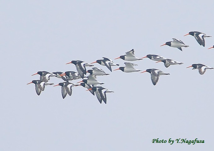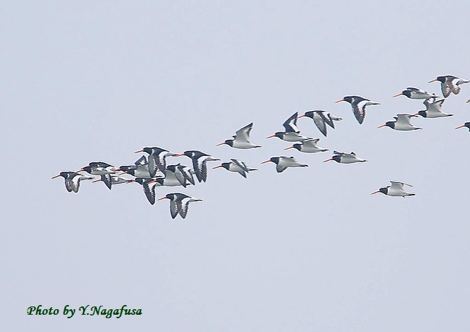 2016年4月12日 ミヤコドリ 飛翔 本日は、カワガラスを見てきました。雛はもう居ませんでした。 一昨日撮影のミヤコドリです。 この日、数羽のミヤコドリを見つけて近づいていったら、いきなり飛び出して いつのまにか大群になっていました。 ミヤコドリが飛び出しました。