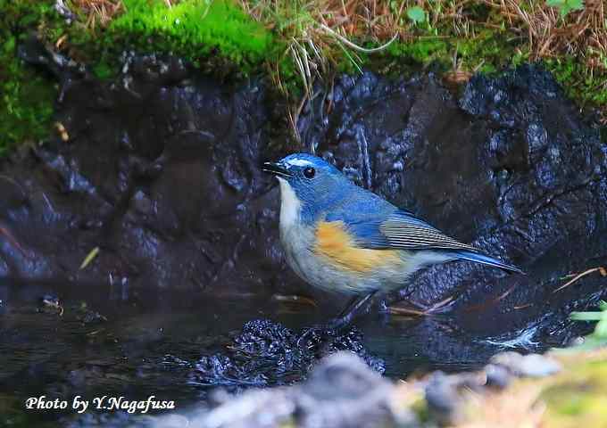 2016年6月1日 ルリビタキ ♂ 留まり物、水飲み 本日は、自宅のベランダからツバメの雛を撮りました。 5月29日撮影のルリビタキ♂です。 この日、お山の水場に数種類の野鳥が来てくれました。 数回に分けて掲載します。 ルリビタキ♂が来ました。 水を飲んでいます。 飛び上がりました。