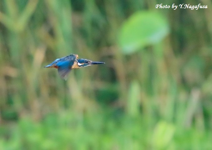 2016年8月2日 カワセミ 飛翔 本日は、雷雨のち晴れ。 7月28日撮影のカワセミです。 この日、一瞬だけ現れたカワセミがすぐ飛んで行ってしまいました。 カワセミが来ました。 飛び出しました。 蓮の上をツバメが通過しました。