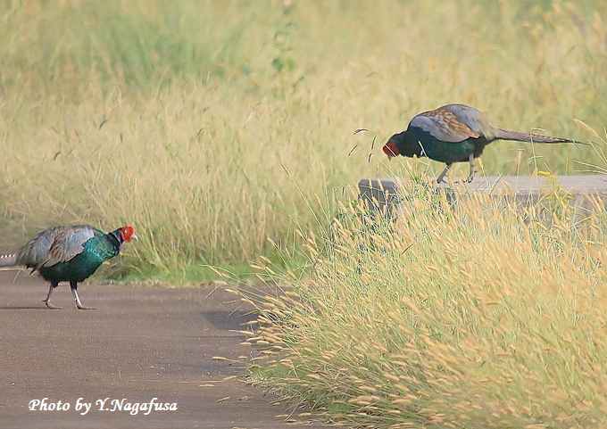 2016年10月12日 キジ ♂ 留まり物 本日は、ミサゴのホバリングが撮れました。 10月6日撮影のキジ♂です。 この日、キジ♂同士が向き合う場面が有りました。 バトルになるかと期待したが仲良く並んで行きました。 キジ♀が来ました。 もう一羽出てきました。