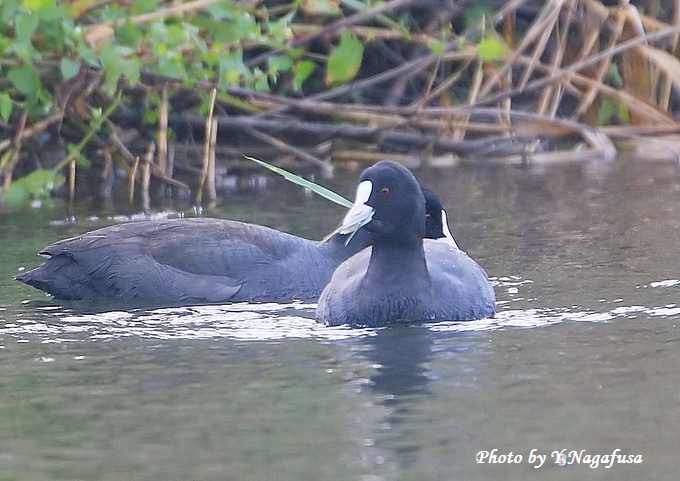 2016年11月22日 カワセミ ホバリング 本日は、紅葉カワセミを撮りに行きました。 10月31日撮影のカワセミです。 この日、逆光の場所でカワセミがホバリングを始めました。 カワセミがホバリングをしていました。 ホバリングの場所はススキの前でした。 近くでオオバンが食事をしています。