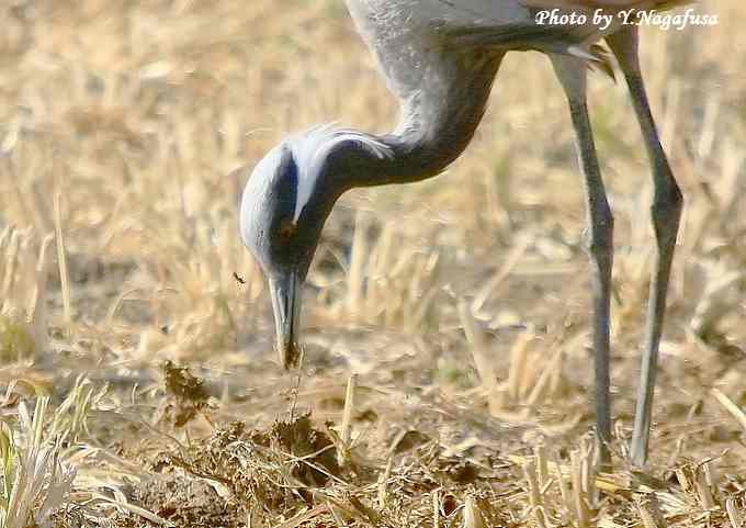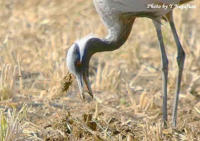 2017年1月25日 アネハヅルA 採餌 本日は、アオゲラに出会えました。 1月22日撮影のアネハヅルの続きです。 この日、珍鳥アネハヅルは田んぼでタニシを捕っているようです アネハヅルが採餌しています。 獲物を見つけたようです。 獲物を咥えて喜びの舞いでしょうか?
