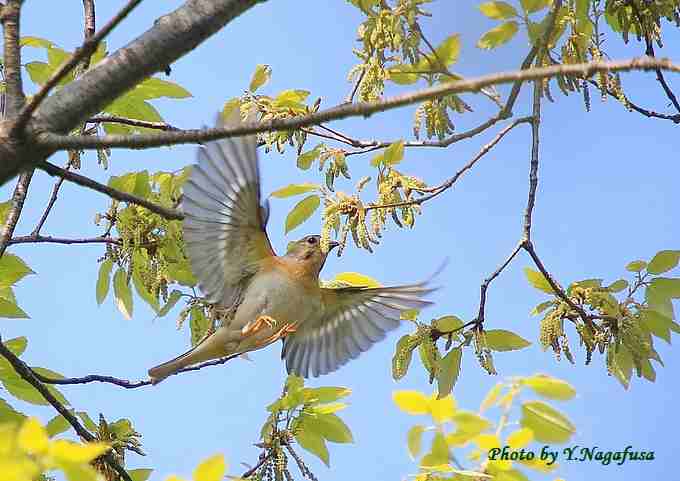 2017年4月18日 アトリ 枝留まり、飛翔 本日は、雨のち晴れ強風。 4月15日撮影のアトリです。 この日、他の鳥を待っていたらアトリの群れが来ました。 今年はアトリの当たり年のようです。数か所で見ました。 アトリの♂が来ました。 アトリ♀が飛び出しました。 ♀ ♂ ♂
