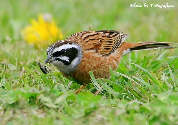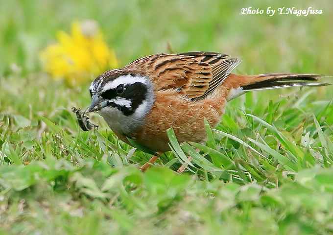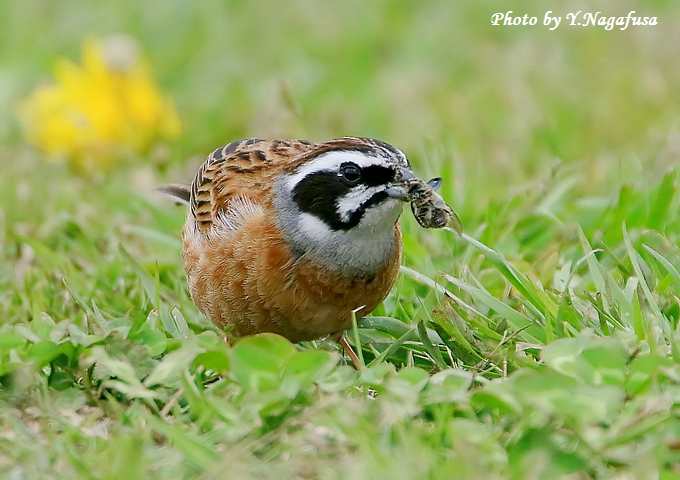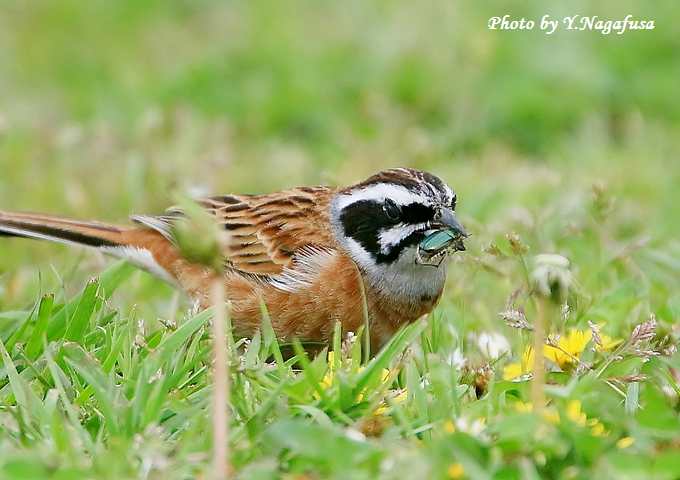 2017年5月2日 ホオジロ1 採餌 本日は、カイツブリの卵を見てきました。 4月26日撮影のホオジロです。 この日、ホオジロが芝生に降りて採餌していました。 こちらも芝生に座って待っていたらカナブンを捕っていました。 ホオジロ♂がカナブンを咥えて来ました。