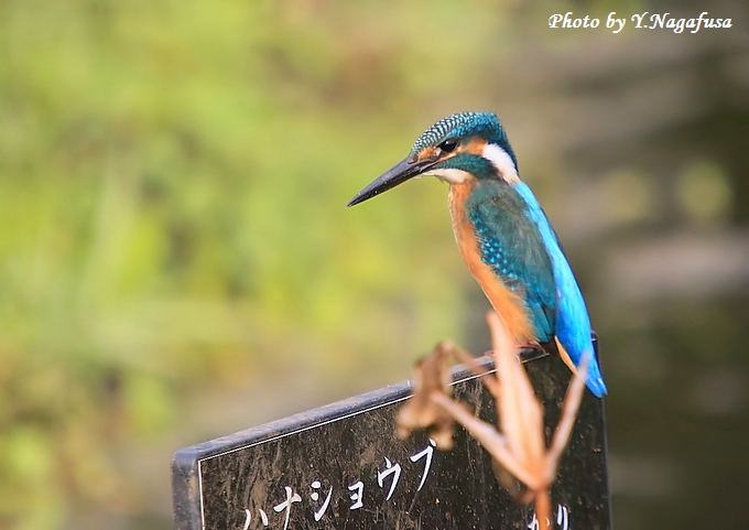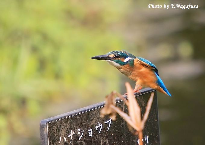 2017年7月22日 カワセミC 留まり物 本日は、初見のカラシラサギに出会えました。 7月18日撮影のカワセミの続きです。 この日、公園の止まり木や近くの看板に来てくれました。 カワセミが留まっています。