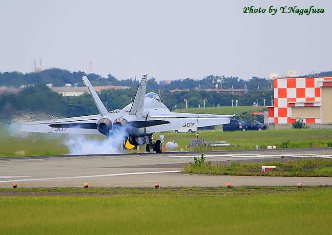 2017年9月21日 米空母艦載機T 訓練飛行 本日は、秋晴れ。 9月5日撮影の米空母艦載機です。 この日、厚木から広島へ引っ越す前の最後の訓練飛行です。 離着陸が頻繁で騒音がひどいので20分ほど撮影して引上げました。 これからは、少し騒音が減ってくれるでしょうか 5台の爆弾を搭載しています。 着地の瞬間、タイヤから煙がでます。