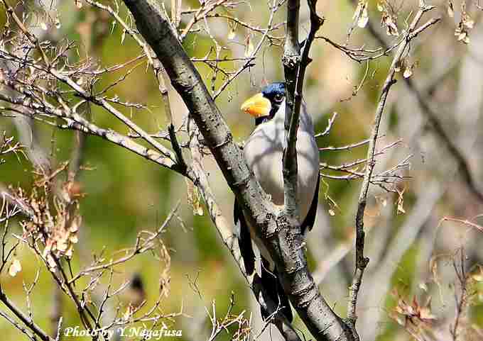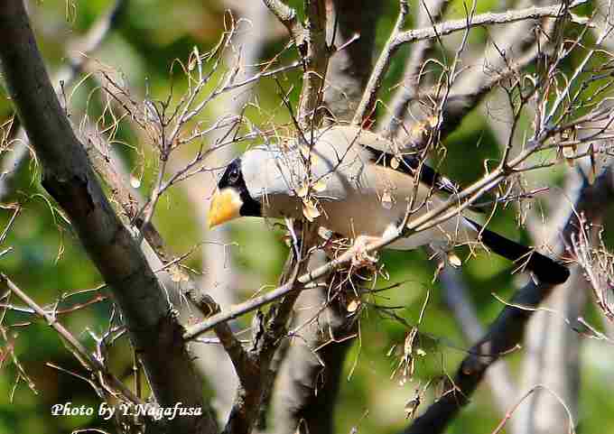 2018年1月13日 イカル 枝留まり、採餌 本日は、カワセミの採餌が撮れました。 1月7日撮影のイカルです。 この日、イカルはしばらく近くで小さな実を食べていました。 この木は小枝が多くスッキリとした場所がありませんでした。 イカルが採餌しています。