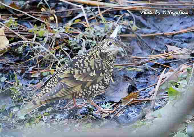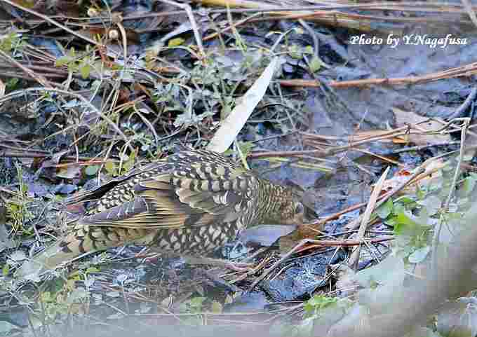 2018年1月15日 トラツグミA 地上 水飲み 本日は、今シーズン5か所目のルリビタキに会いました。 1月11日撮影のトラツグミの続きです。 この日、枝留まりの後、地上に降りて水を飲み始めました。 トラツグミが地上に降りました。