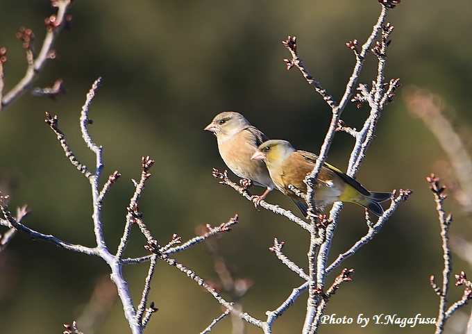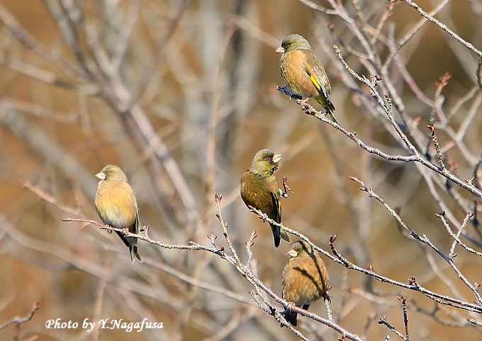 2018年2月5日 カワラヒワ 枝留まり、雪上 本日は、ビンズイに遊んでもらいました。 1月29日撮影のカワラヒワです。 この日、地上に居たカワラヒワの群れが梅ノ木に留まりました。 カワラヒワの群れが居ました。 雪上に降りました。