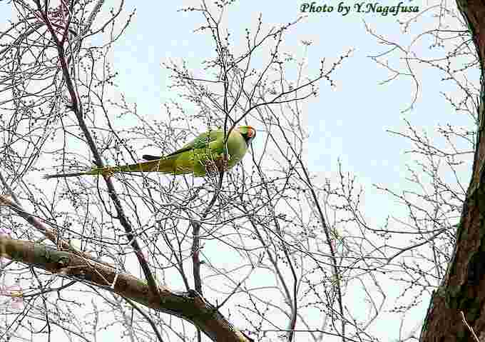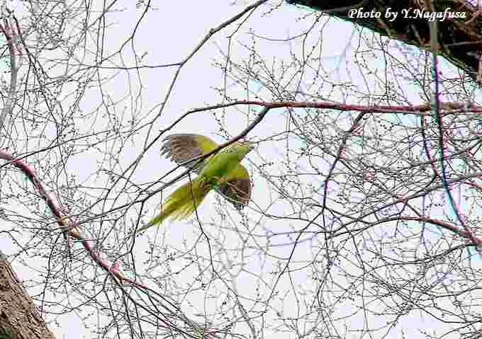 2018年4月11日 ワカケホンセイインコ 枝留まり、給餌、飛び 本日は、曇り時々雨。 3月15日撮影のワカケホンセイインコです。 この日、ワカケホンセイインコの塒を見に行ってみました。 求愛給餌しているようです。 ワカケホンセイインコが2羽いました。 給餌のようです。