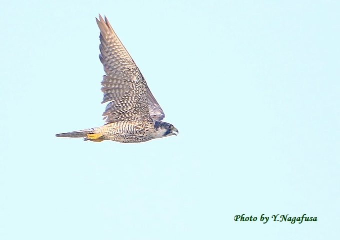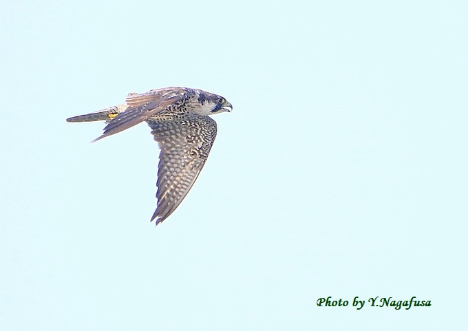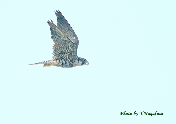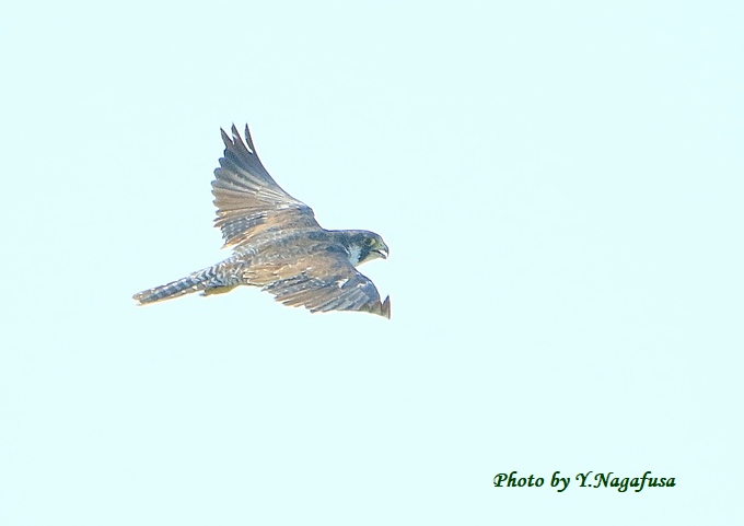 2018年7月7日 ハヤブサ 若鳥 飛翔 本日は、空振りでした。 7月1日撮影のハヤブサです。 この日、アオバトを狙ってハヤブサが現れました。 狩りはしませんでしたが若鳥のようです。 ハヤブサが来ました。