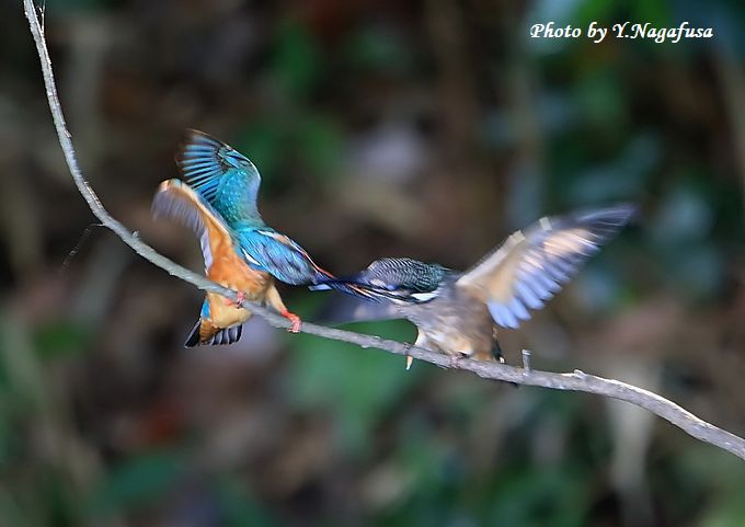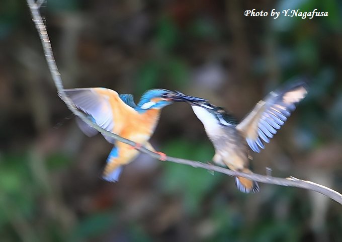 2018年7月22日 カワセミE 親子 本日も暑いので自宅待期。 7月10日撮影のカワセミの続きです。 この日、餌がほしいと親におねだりする雛です。 ピン甘ですが珍しい場面なので掲載します。 左♂親、右雛。