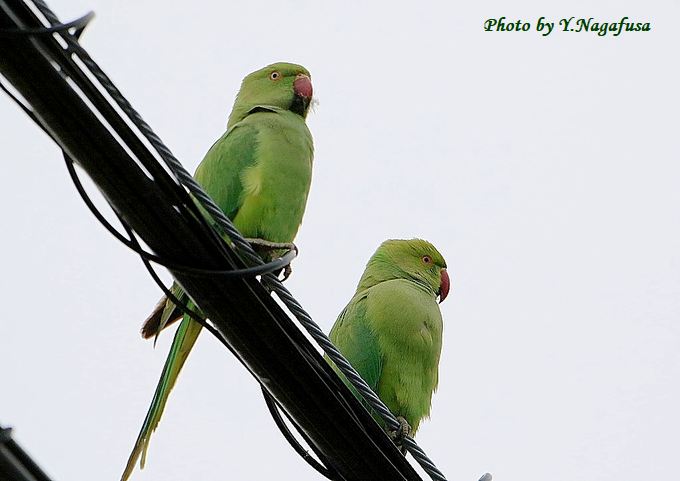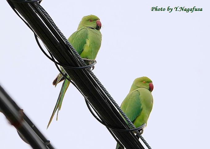 2018年8月11日 ワカケホンセイインコ 電線留まり 本日は、散歩のみ。 在庫のワカケホンセイインコです。 この日、民家の上の電線にワカケホンセイインコが来ていました。 ワカケホンセイインコが居ました。