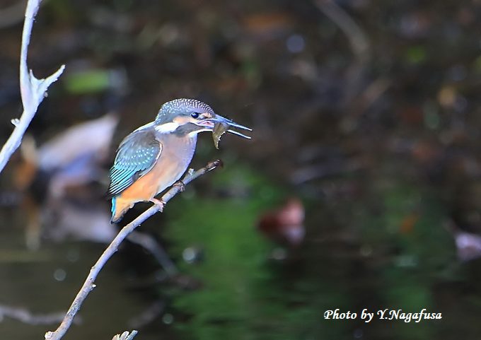 2018年8月16日 カワセミH 雛 枝留まり、採餌 本日も用事で鳥撮りは休み。 7月10日撮影のカワセミの続きです。 この日、カワセミ雛は獲物が捕れるまでに成長していました。 カワセミ雛。 自力で獲物を捕りました。