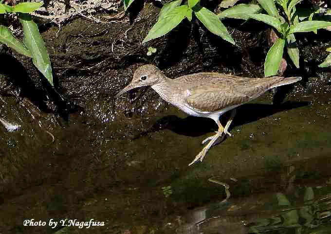 イソシギが獲物を捜して歩いています。