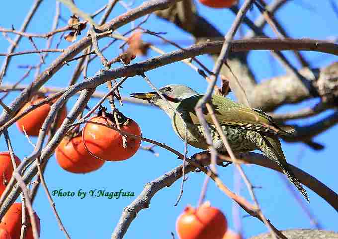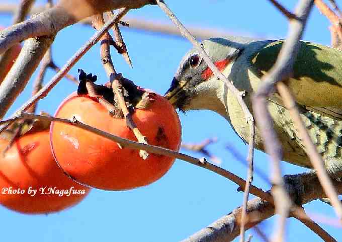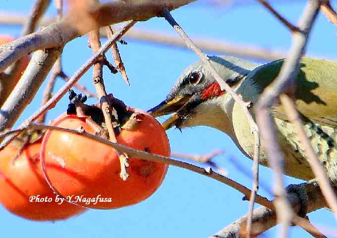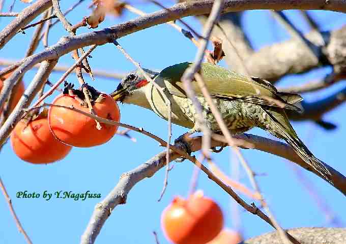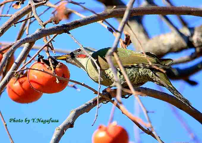 2018年12月19日 アオゲラ 柿採餌