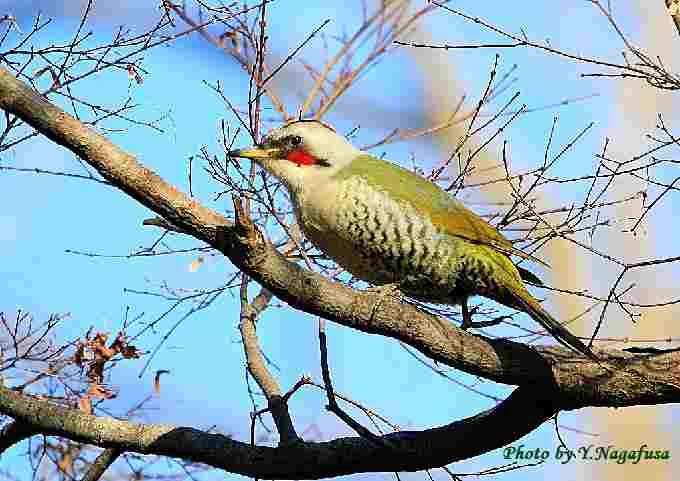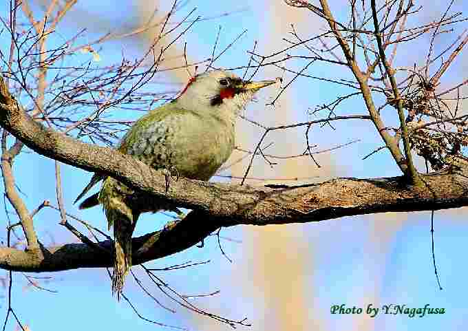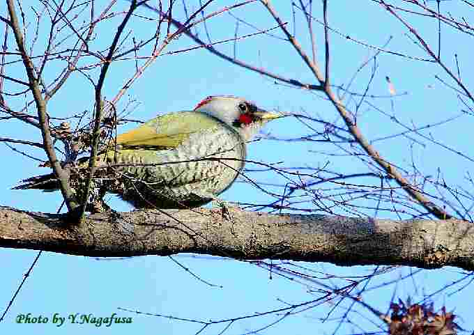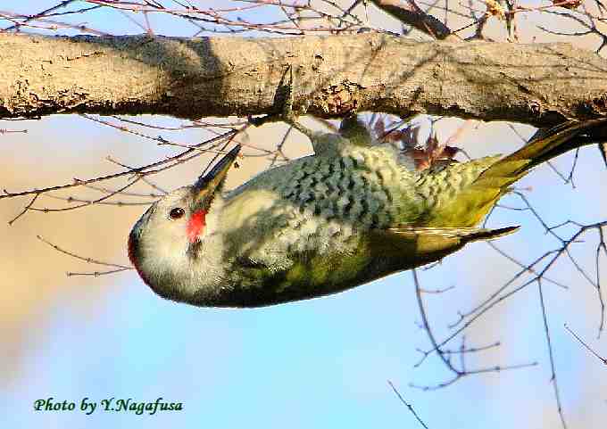 2019年1月31日 アオゲラ 枝留まり 本日は、雨時々曇り夜雪。 1月20日撮影のアオゲラです。 この日、鳥を捜して園内を歩いているとアオゲラを見つけました。 細い枝が多かったがなんとか撮れました。 アオゲラが居ました。