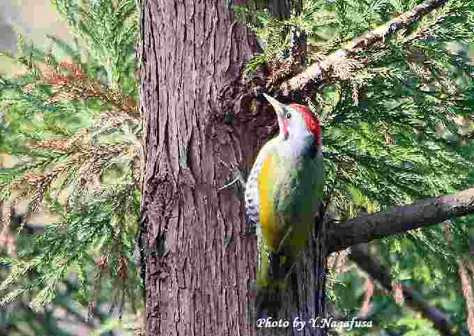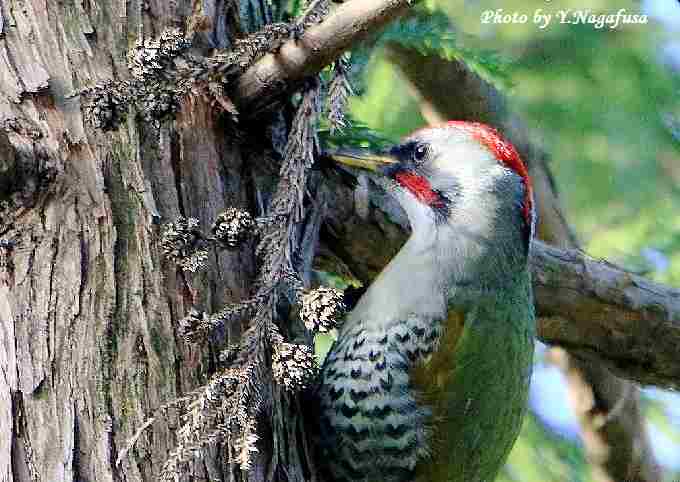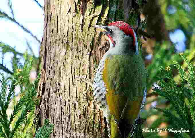 2019年2月22日 アオゲラ 留まり物 本日もキクイタダキと格闘してきました。惨敗です。 2月16日撮影のアオゲラ♂です。 この日、カメラマンが上を見ていたのでそちらを見るとアオゲラがいました。 少し追いかけながら♂であることを確認しました。 アオゲラ♂がいました。