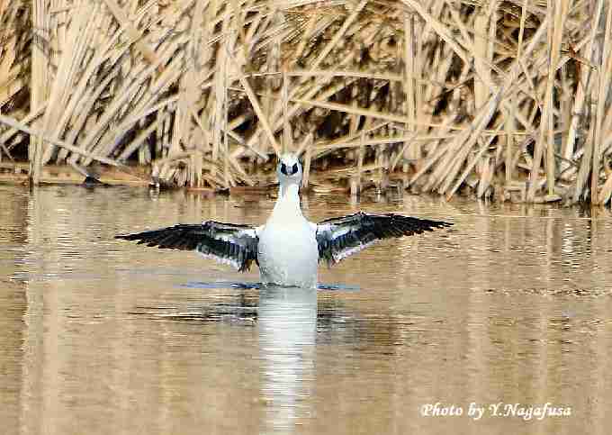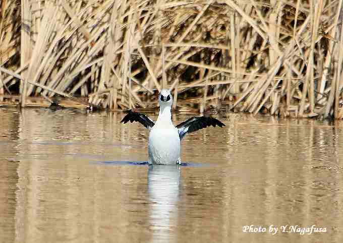 2019年3月2日 ミコアイサU ♂羽ばたき 本日は、カワセミに遊んでもらいました。 2月24日撮影のミコアイサの続きです。 この日、ミコアイサ♂は正面向きで羽ばたきをしてくれました。 ミコアイサ♂が羽ばたくを始めました。物