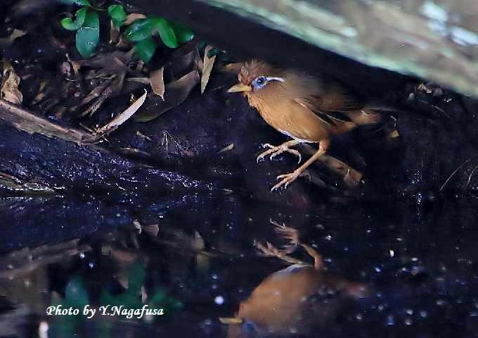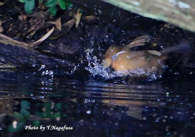 2019年7月27日 ガビチョウU 水浴び 本日の、蓮カワは花でなく実に留まりました。 7月21日撮影のガビチョウの続きです。 この日、ガビチョウが水浴びを始めました。 ガビチョウが水浴びしています。