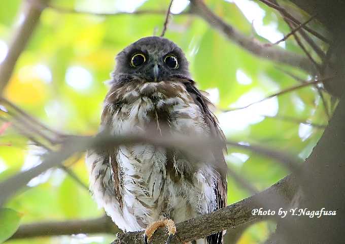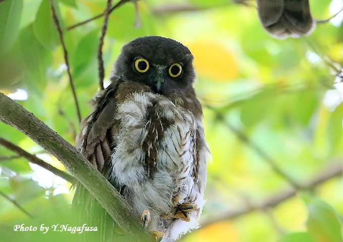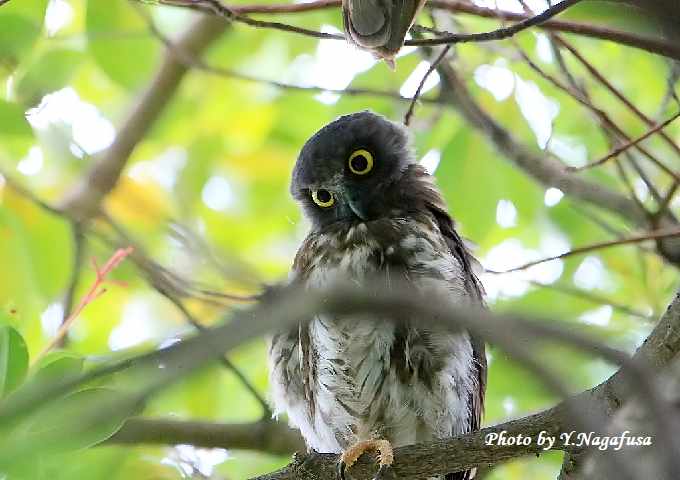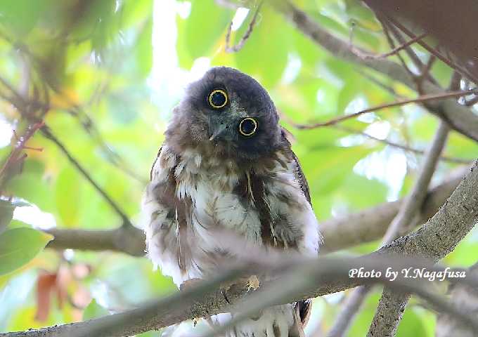 アオバズク雛がこちらを見ています。