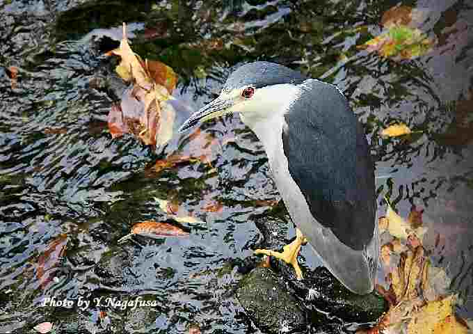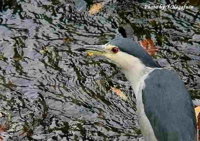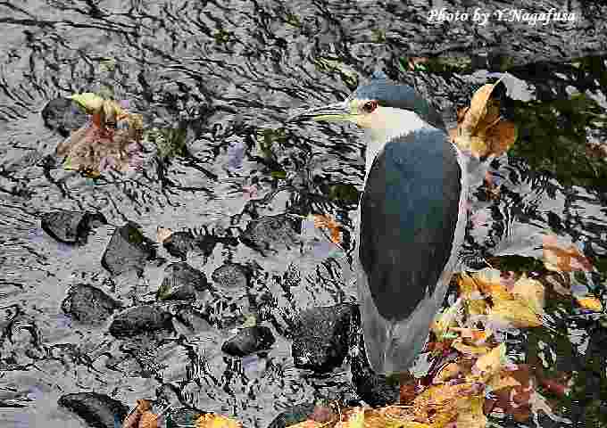 この日、ゴイサギは塒入りの前に弑さな川で獲物を狙っていました。