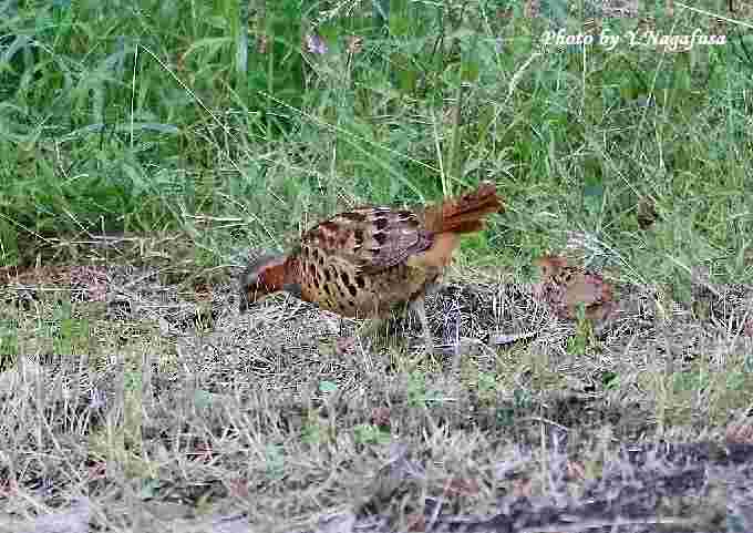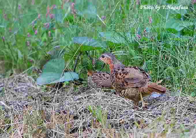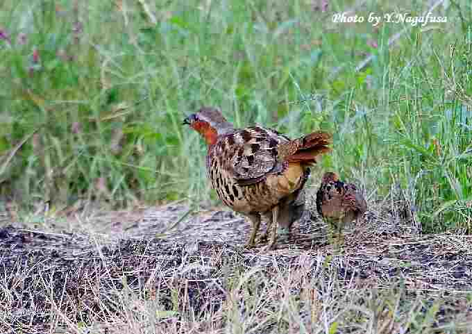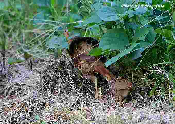 この日、コジュケイが出てきたので見ていたら後ろから雛も出てきました。
